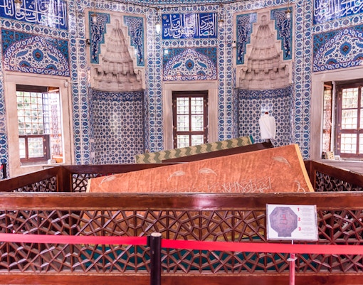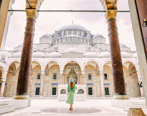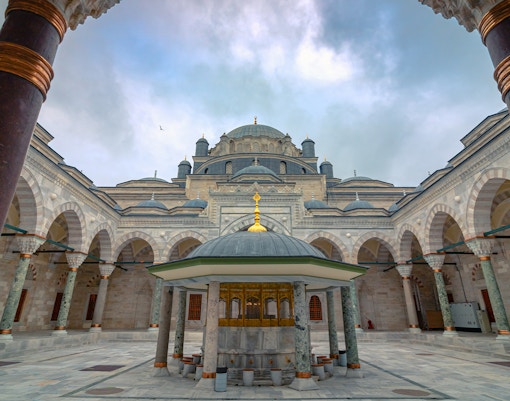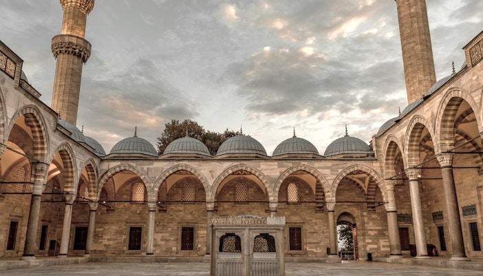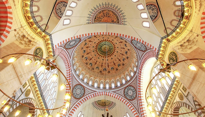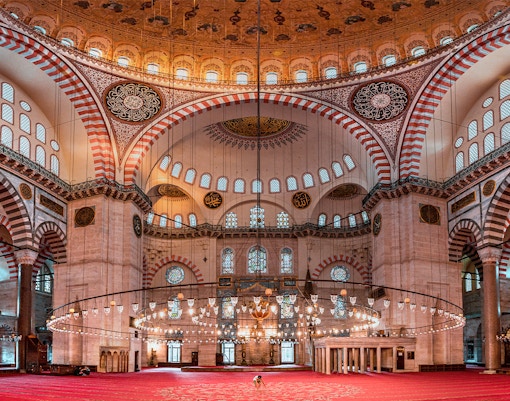 La vasta sala di preghiera è coronata da una cupola alta 53 metri che riempie lo spazio con una luce soffusa proveniente dalle vetrate. Sostenuta da quattro massicci pilastri, crea un senso di equilibrio e di calma, mettendo in mostra la maestria di Mimar Sinan in fatto di proporzioni e acustica.